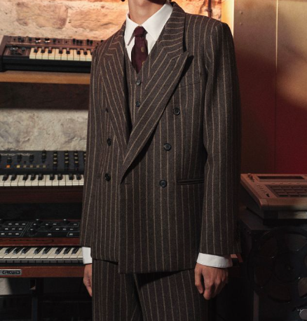 Features: blazer, fine stripes, puff sleeves, jacket, puff sleeves and a button front
